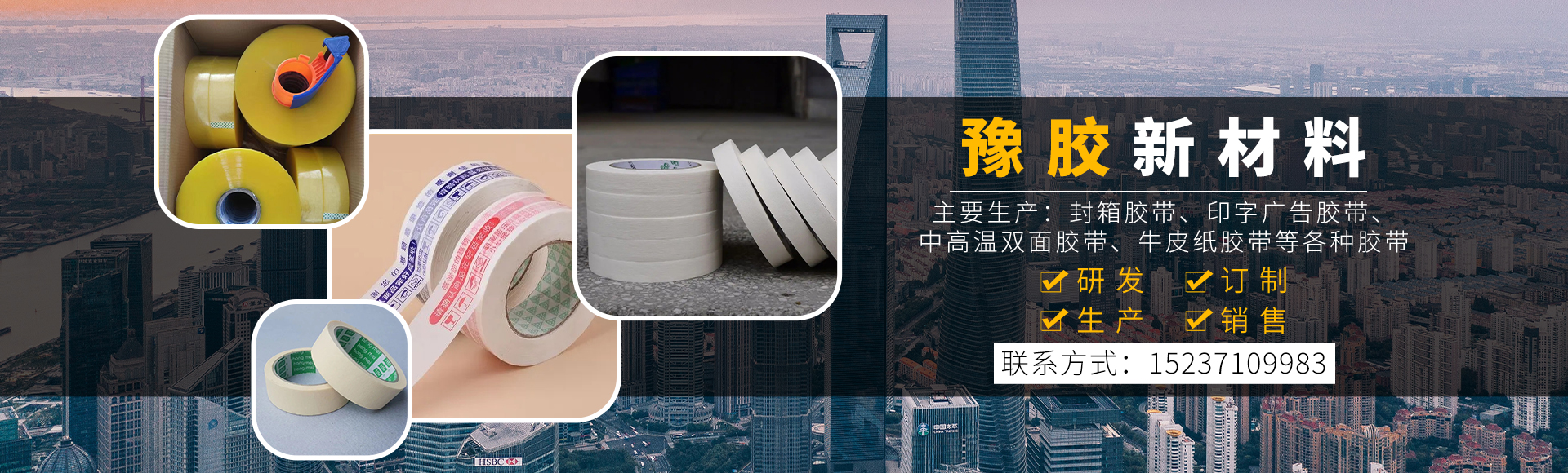 河南豫膠新材料科技有限公司,廠區占地2萬平方米,員工200余人,我公司是一家集研發、訂制、生產、銷售為一體的綜合型企業。主要生產:封箱膠帶、印字廣告膠帶、海綿膠帶、中高溫雙面膠帶、中高溫美紋紙膠帶、牛皮紙膠帶、等各種膠帶。公司落在歷史悠久、文化深遠、風景秀麗的河南省省會--鄭州,現在的鄭州是整個中原崛起計劃的腹地,經濟發達,交通便利。公司秉承"顧客至上,銳意進取"的經營理念,堅持"客戶優先"的原則為廣大客戶提供優質的服務。歡迎惠顧!